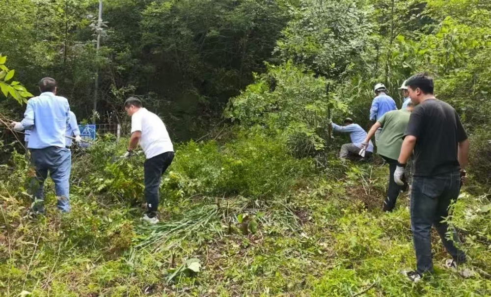 因長期停用,炸藥庫周邊雜草叢生、灌木密布,部分區(qū)域雜草高達(dá)兩米,不僅影響安全巡查,還存在多種風(fēng)險?,F(xiàn)場,職工們手持割草機(jī)、鐮刀、鐵鍬等工具,分工協(xié)作:年輕職工主動承擔(dān)割草、砍伐重任,老員工則負(fù)責(zé)理碎石、搬運雜物,黨員先鋒們更是一馬當(dāng)先,帶頭攻堅復(fù)雜區(qū)域。盡管汗水浸透工裝,雙手磨出水泡,但無人喊苦叫累,展現(xiàn)出強(qiáng)大的團(tuán)隊凝聚力。