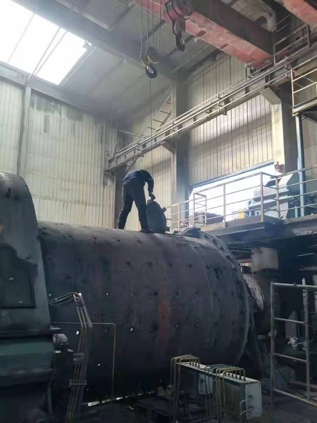 26日上午8時,開始對9號球磨機進行停機倒鋼球作業(yè),相繼開始了一系列的拆裝工作。開始用行車自動模式進行倒鋼球和拆卸作業(yè),隨著裝襯板難度和危險系數的增大,后期行車采用人工手動模式作業(yè),通過這種倒行車的辦法,大大提高了工作效率,保證了作業(yè)的精準和人員的安全。經過65個小時的連續(xù)奮戰(zhàn),9號球磨機于3月1日凌晨1:25開機運轉。
