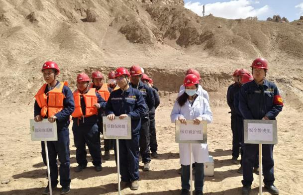演練模擬因遭遇持續(xù)強降雨,山體滑坡堵塞尾礦庫排洪系統(tǒng),庫內水位急劇上升,即將面臨漫壩造成環(huán)境污染事件。演練開始后,格爾木銀興公司安委會立即啟動應急預案,并及時向甲方相關部門報告險情,迅速成立現場應急救援指揮部,緊急調集搶險、醫(yī)療、警戒、后勤保障四支救援力量,快速趕赴事故現場開展救援。各應急救援小組嚴格依據應急預案和既定職責分工,各負其責,有條不紊地迅速展開疏散、警戒、應急物資及時到位,按預案處置措施現場施救,完成排洪系統(tǒng)的清理、壩頂加固,險情解除。